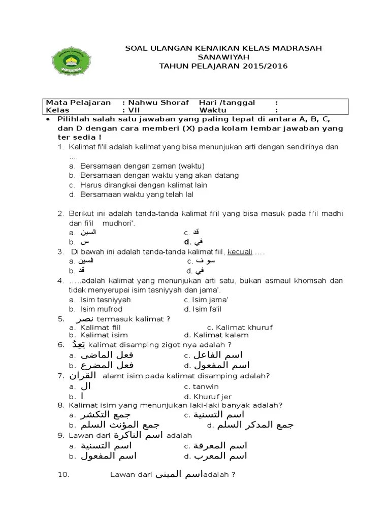 Soal Nahwu Shorof Dan Jawabannya Kelas 8 : Soal Ulangan Nahwu / Soal semester genap 2015 nahwu shorof kelas 8.